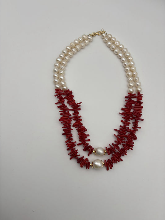 Koralle, Süßwasserperlen, Sterlingsilber S925/18К vergoldet