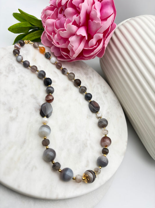 Achat Botswana, Sterlingsilber S925/18K vergoldet