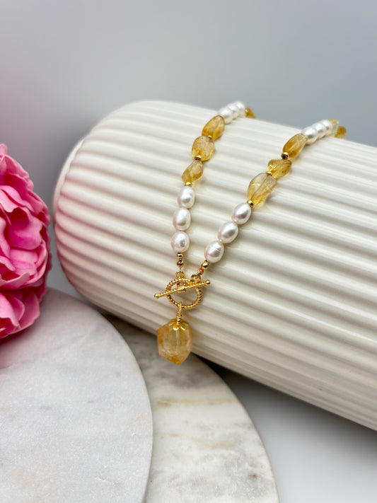 Citrin, Süßwasserperlen, Sterlingsilber S925/18K vergoldet