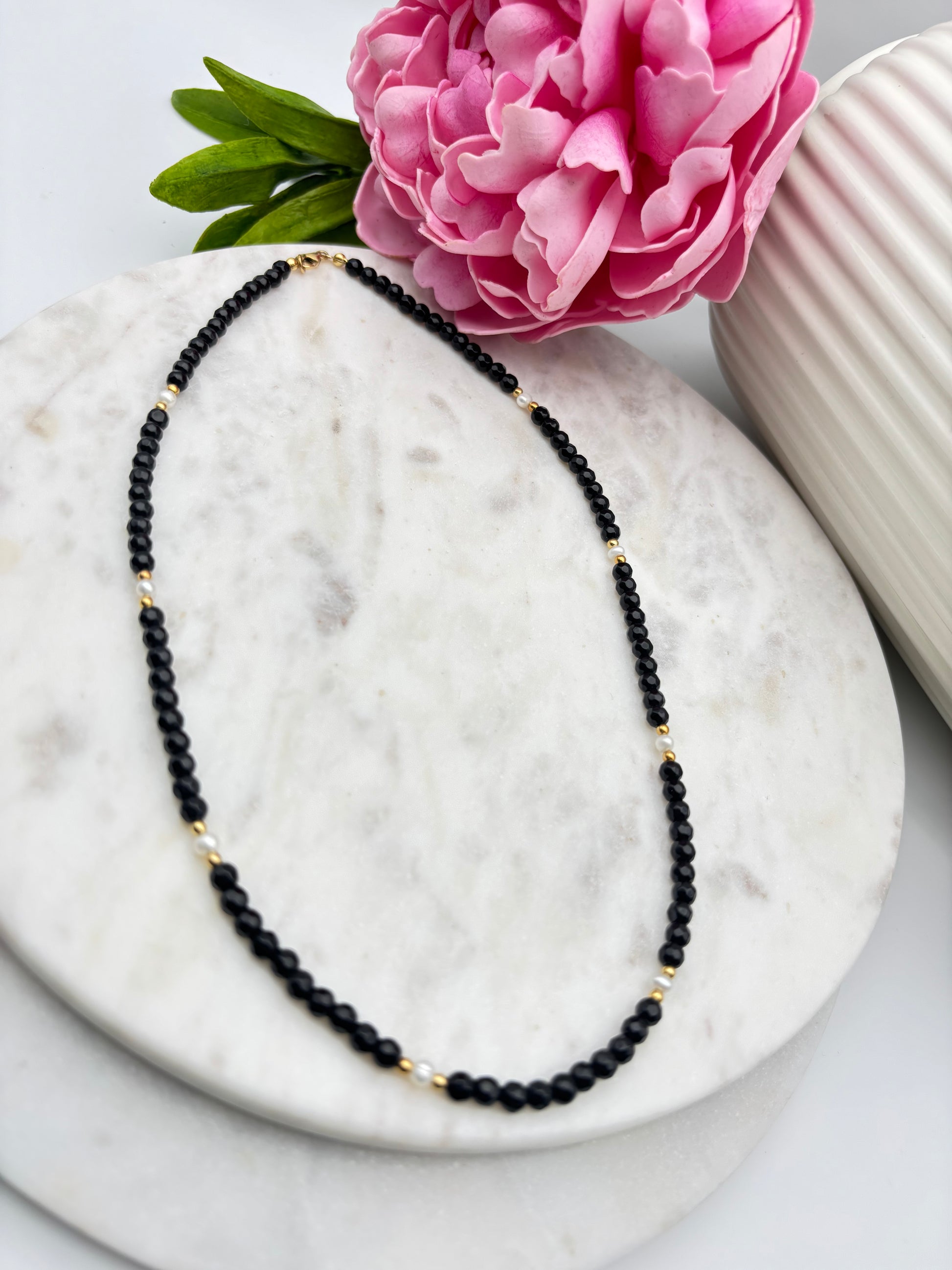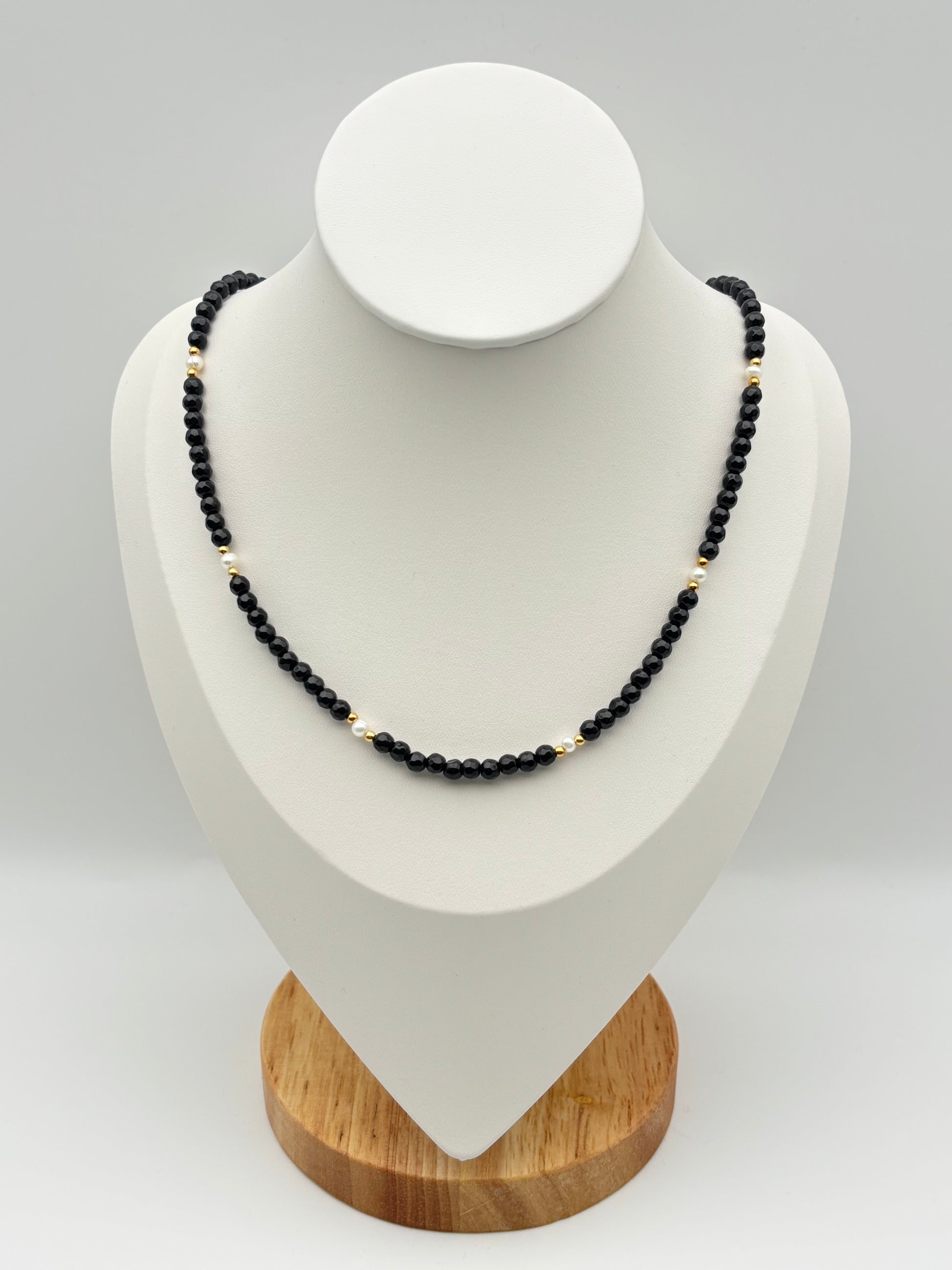 Schwarzer Achat, Süßwasserperlen, Sterlingsilber S925/18K vergoldet