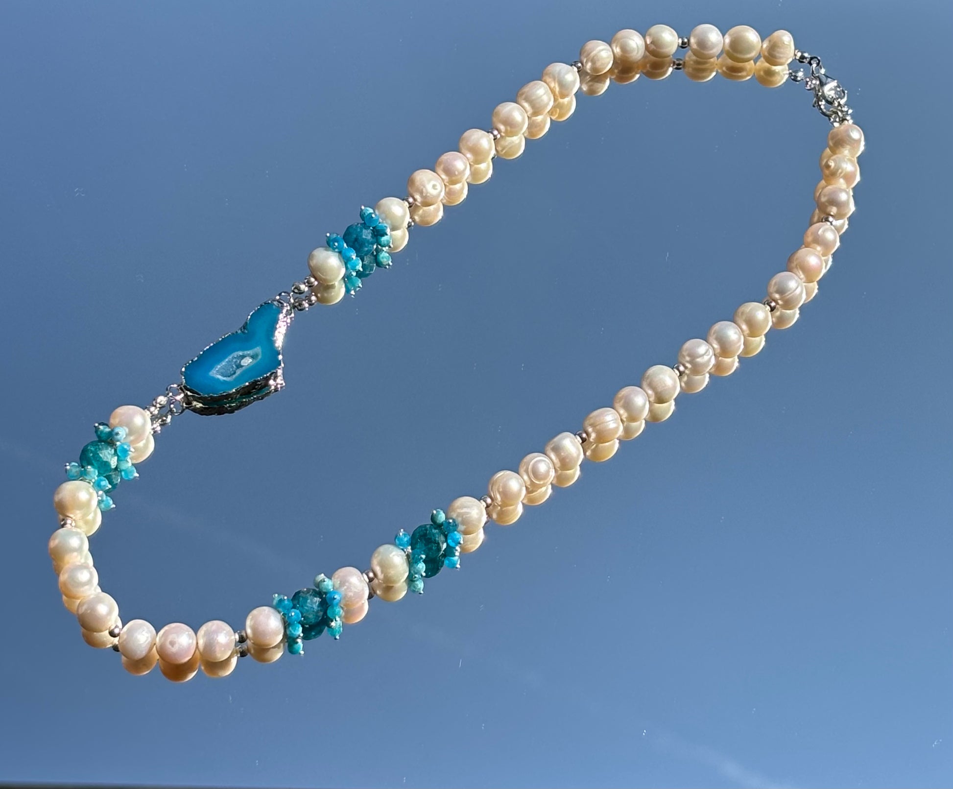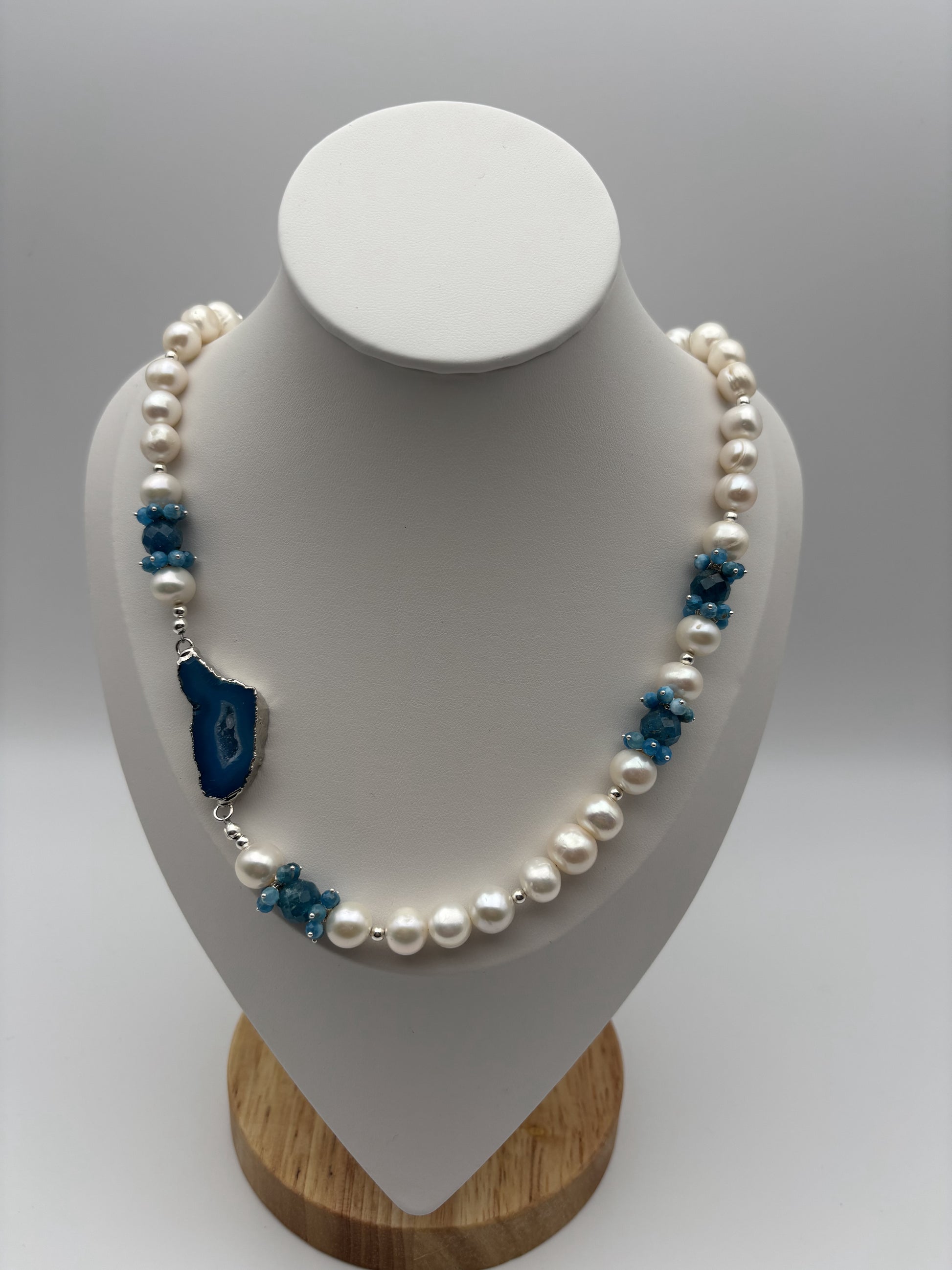 Süßwasserperlen, Achat, Apatit, Sterlingsilber S925