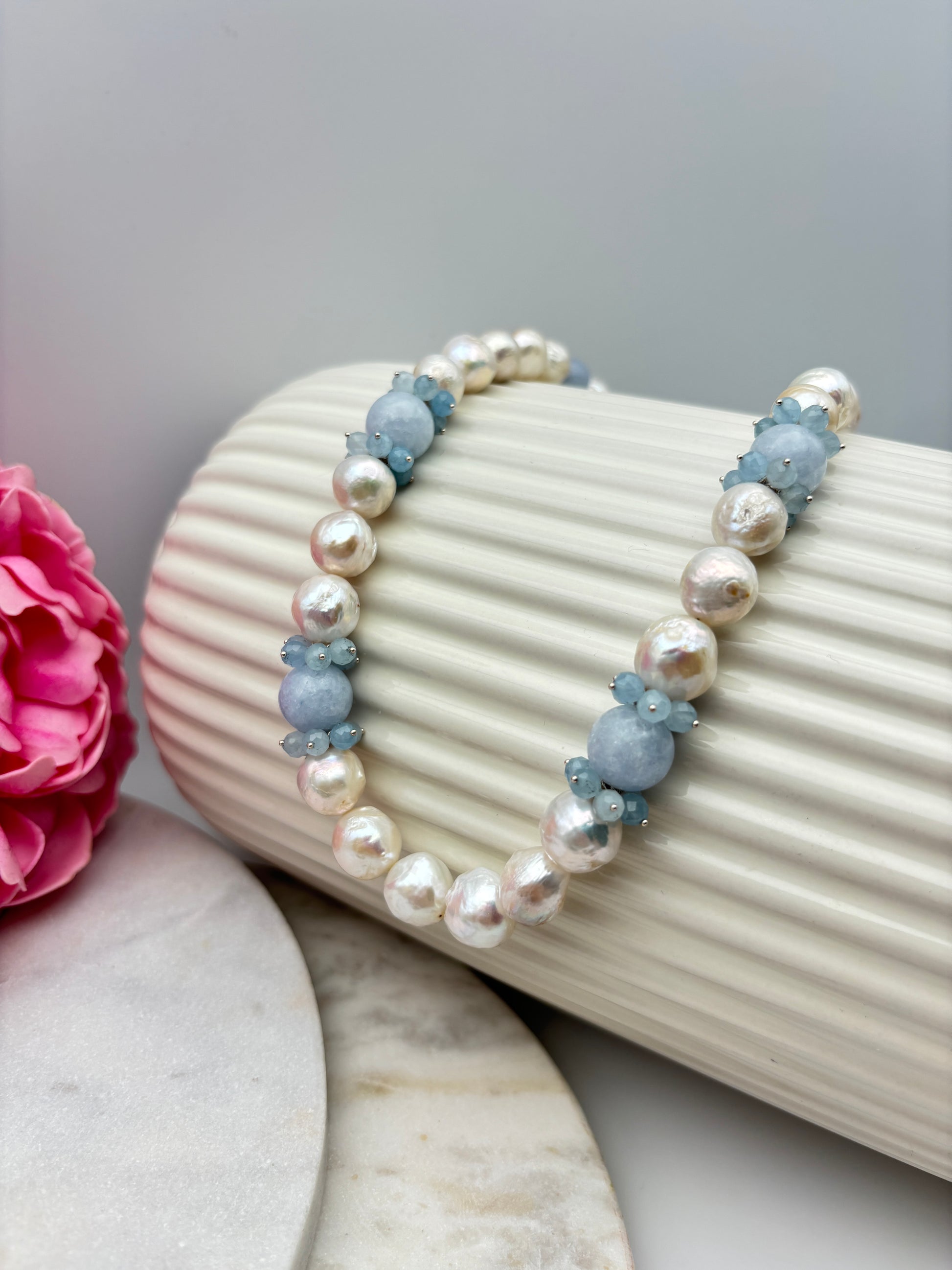 Süßwasserperlen, Aquamarin, Sterlingsilber S925