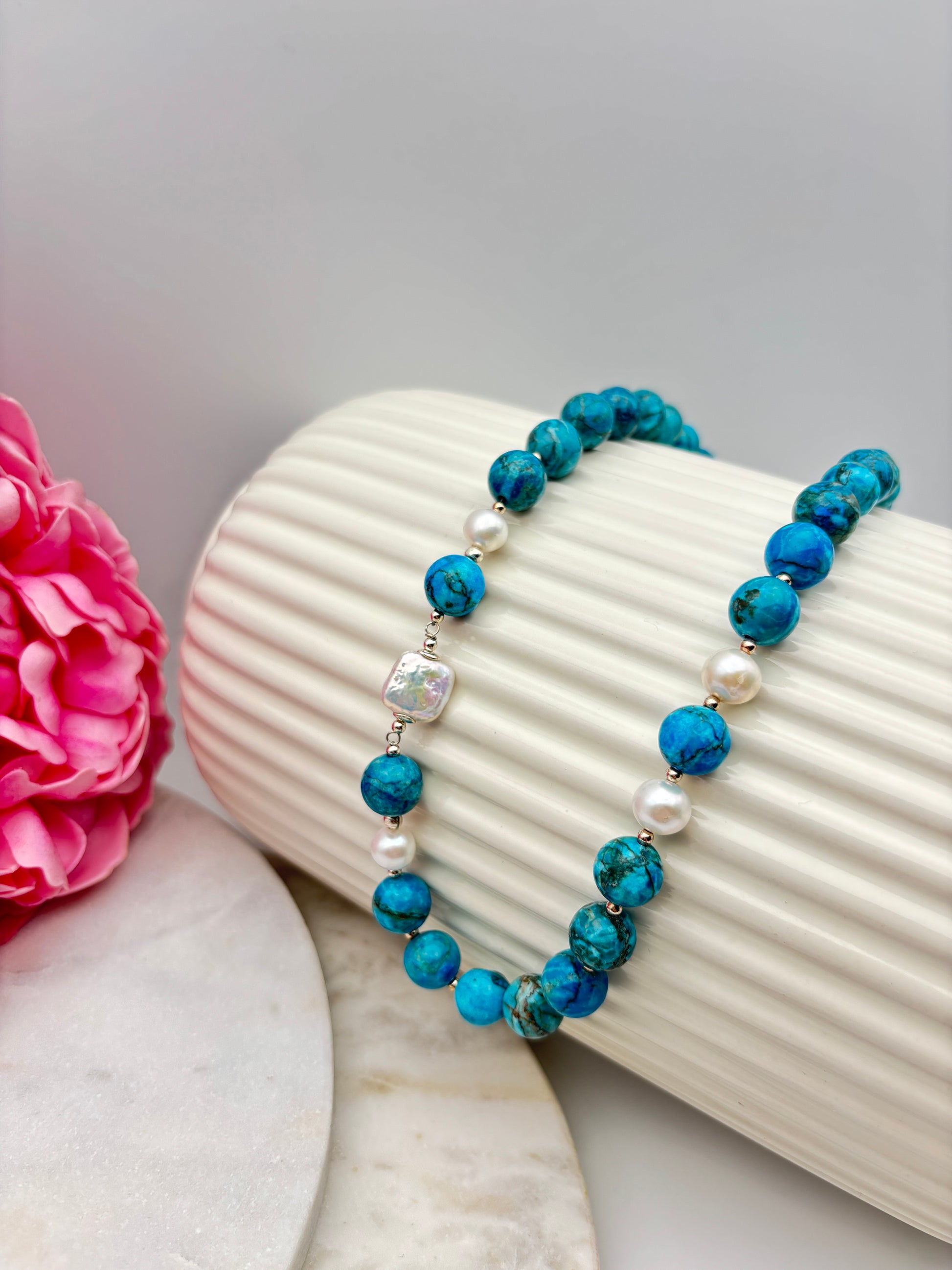 Türkis, Süßwasserperlen, Sterlingsilber S925